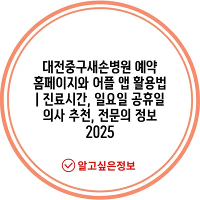 대전중구새손병원 예약 홈페이지와 어플 앱 활용법 | 진료시간, 일요일 공휴일 의사 추천, 전문의 정보 2025