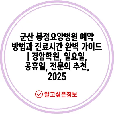 군산 봉정요양병원 예약 방법과 진료시간 완벽 가이드 | 경암학원, 일요일, 공휴일, 전문의 추천, 2025