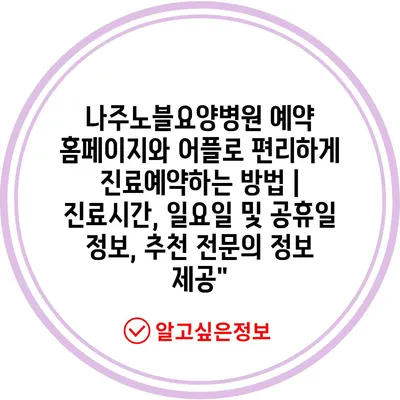 나주노블요양병원 예약 홈페이지와 어플로 편리하게 진료예약하는 방법 | 진료시간, 일요일 및 공휴일 정보, 추천 전문의 정보 제공”
