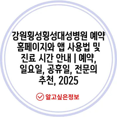 강원횡성횡성대성병원 예약 홈페이지와 앱 사용법 및 진료 시간 안내 | 예약, 일요일, 공휴일, 전문의 추천, 2025