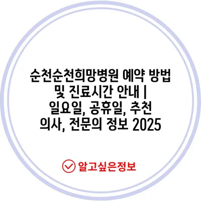순천순천희망병원 예약 방법 및 진료시간 안내 | 일요일, 공휴일, 추천 의사, 전문의 정보 2025
