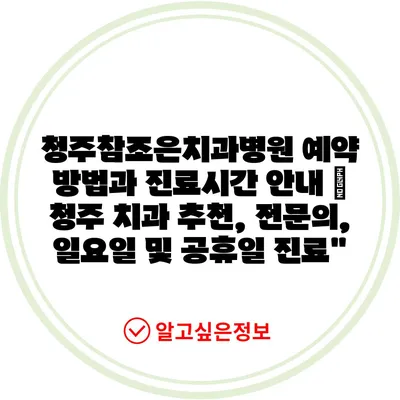 청주참조은치과병원 예약 방법과 진료시간 안내 | 청주 치과 추천, 전문의, 일요일 및 공휴일 진료”