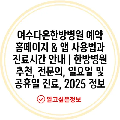여수다온한방병원 예약 홈페이지 & 앱 사용법과 진료시간 안내 | 한방병원 추천, 전문의, 일요일 및 공휴일 진료, 2025 정보