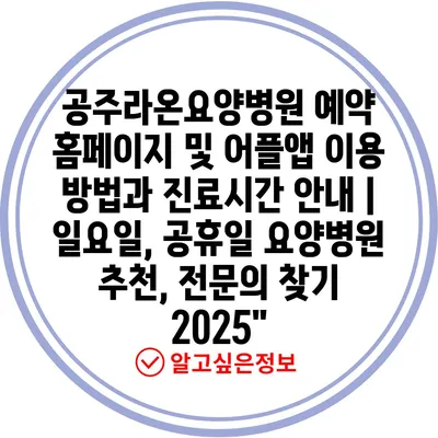 공주라온요양병원 예약 홈페이지 및 어플앱 이용 방법과 진료시간 안내 | 일요일, 공휴일 요양병원 추천, 전문의 찾기 2025″