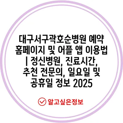 대구서구곽호순병원 예약 홈페이지 및 어플 앱 이용법 | 정신병원, 진료시간, 추천 전문의, 일요일 및 공휴일 정보 2025
