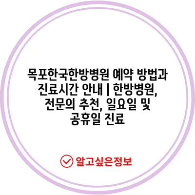 목포한국한방병원 예약 방법과 진료시간 안내 | 한방병원, 전문의 추천, 일요일 및 공휴일 진료