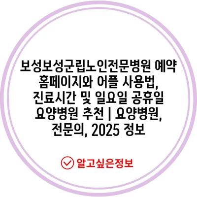 보성보성군립노인전문병원 예약 홈페이지와 어플 사용법, 진료시간 및 일요일 공휴일 요양병원 추천 | 요양병원, 전문의, 2025 정보