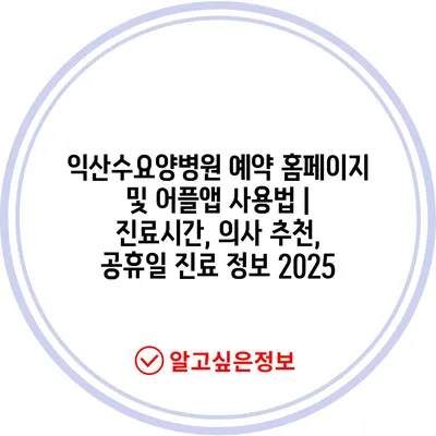 익산수요양병원 예약 홈페이지 및 어플앱 사용법 | 진료시간, 의사 추천, 공휴일 진료 정보 2025