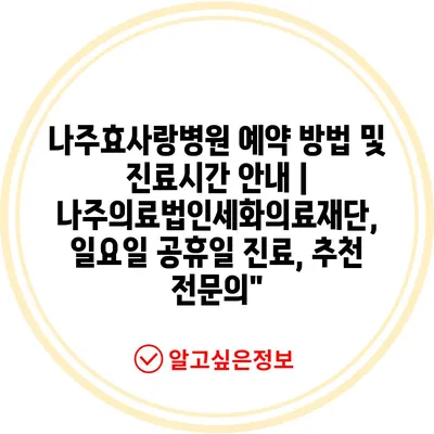 나주효사랑병원 예약 방법 및 진료시간 안내 | 나주의료법인세화의료재단, 일요일 공휴일 진료, 추천 전문의”