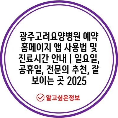 광주고려요양병원 예약 홈페이지 앱 사용법 및 진료시간 안내 | 일요일, 공휴일, 전문의 추천, 잘 보이는 곳 2025