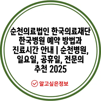 순천의료법인 한국의료재단 한국병원 예약 방법과 진료시간 안내 | 순천병원, 일요일, 공휴일, 전문의 추천 2025
