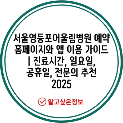서울영등포어울림병원 예약 홈페이지와 앱 이용 가이드 | 진료시간, 일요일, 공휴일, 전문의 추천 2025