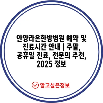 안양라온한방병원 예약 및 진료시간 안내 | 주말, 공휴일 진료, 전문의 추천, 2025 정보