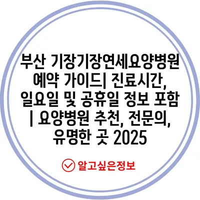 부산 기장기장연세요양병원 예약 가이드| 진료시간, 일요일 및 공휴일 정보 포함 | 요양병원 추천, 전문의, 유명한 곳 2025