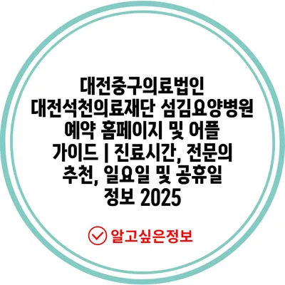 대전중구의료법인 대전석천의료재단 섬김요양병원 예약 홈페이지 및 어플 가이드 | 진료시간, 전문의 추천, 일요일 및 공휴일 정보 2025