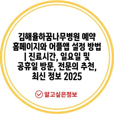 김해율하꿈나무병원 예약 홈페이지와 어플앱 설정 방법 | 진료시간, 일요일 및 공휴일 방문, 전문의 추천, 최신 정보 2025