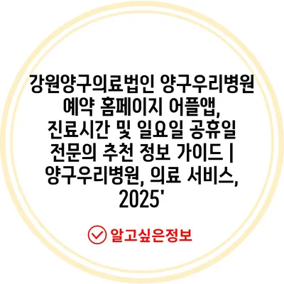 강원양구의료법인 양구우리병원 예약 홈페이지 어플앱, 진료시간 및 일요일 공휴일 전문의 추천 정보 가이드 | 양구우리병원, 의료 서비스, 2025′
