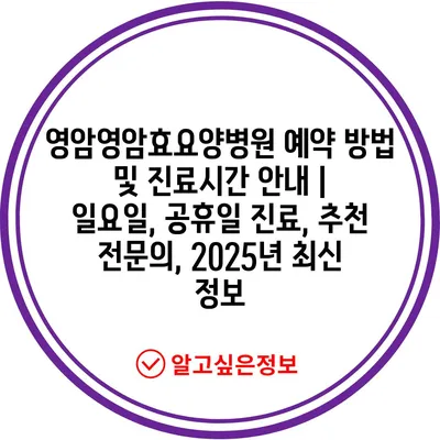 영암영암효요양병원 예약 방법 및 진료시간 안내 | 일요일, 공휴일 진료, 추천 전문의, 2025년 최신 정보