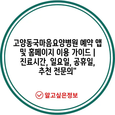 고양동국마음요양병원 예약 앱 및 홈페이지 이용 가이드 | 진료시간, 일요일, 공휴일, 추천 전문의”