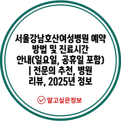 서울강남호산여성병원 예약 방법 및 진료시간 안내(일요일, 공휴일 포함) | 전문의 추천, 병원 리뷰, 2025년 정보