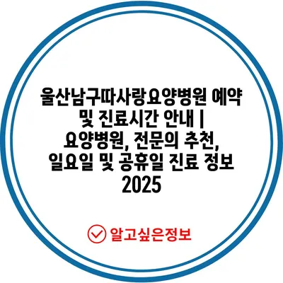 울산남구따사랑요양병원 예약 및 진료시간 안내 | 요양병원, 전문의 추천, 일요일 및 공휴일 진료 정보 2025