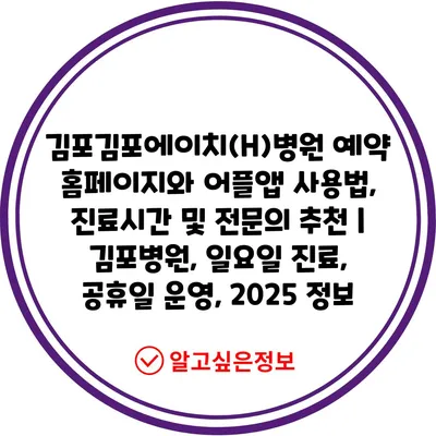 김포김포에이치(H)병원 예약 홈페이지와 어플앱 사용법, 진료시간 및 전문의 추천 | 김포병원, 일요일 진료, 공휴일 운영, 2025 정보