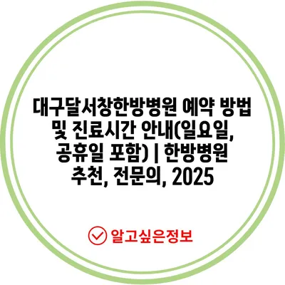 대구달서창한방병원 예약 방법 및 진료시간 안내(일요일, 공휴일 포함) | 한방병원 추천, 전문의, 2025