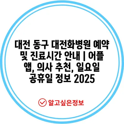 대전 동구 대전화병원 예약 및 진료시간 안내 | 어플 앱, 의사 추천, 일요일 공휴일 정보 2025
