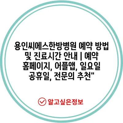 용인씨에스한방병원 예약 방법 및 진료시간 안내 | 예약 홈페이지, 어플앱, 일요일 공휴일, 전문의 추천”