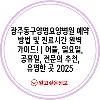 광주동구양명요양병원 예약 방법 및 진료시간 완벽 가이드! | 어플, 일요일, 공휴일, 전문의 추천, 유명한 곳 2025
