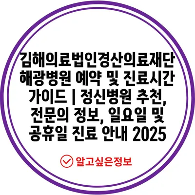 김해의료법인경산의료재단 해광병원 예약 및 진료시간 가이드 | 정신병원 추천, 전문의 정보, 일요일 및 공휴일 진료 안내 2025