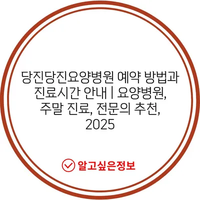 당진당진요양병원 예약 방법과 진료시간 안내 | 요양병원, 주말 진료, 전문의 추천, 2025