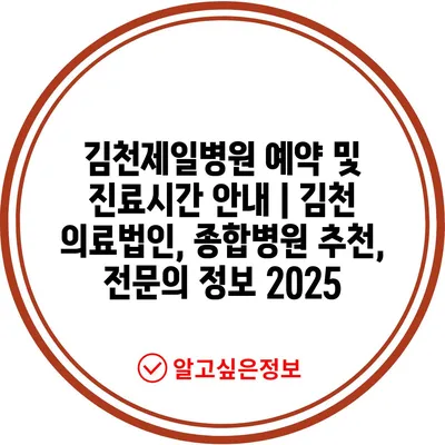 김천제일병원 예약 및 진료시간 안내 | 김천 의료법인, 종합병원 추천, 전문의 정보 2025