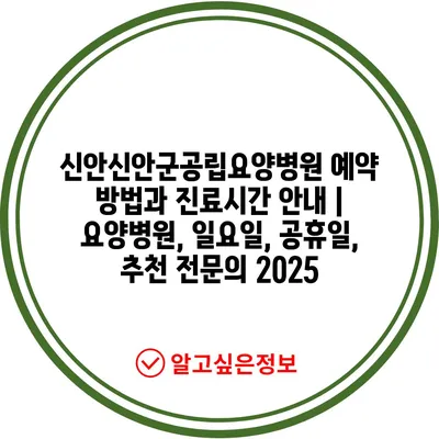 신안신안군공립요양병원 예약 방법과 진료시간 안내 | 요양병원, 일요일, 공휴일, 추천 전문의 2025