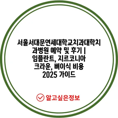 서울서대문연세대학교치과대학치과병원 예약 및 후기 | 임플란트, 지르코니아 크라운, 뼈이식 비용 2025 가이드
