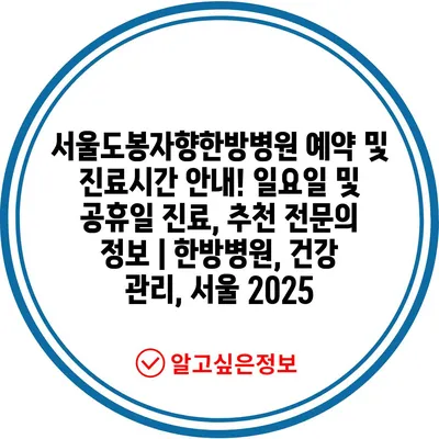 서울도봉자향한방병원 예약 및 진료시간 안내! 일요일 및 공휴일 진료, 추천 전문의 정보 | 한방병원, 건강 관리, 서울 2025