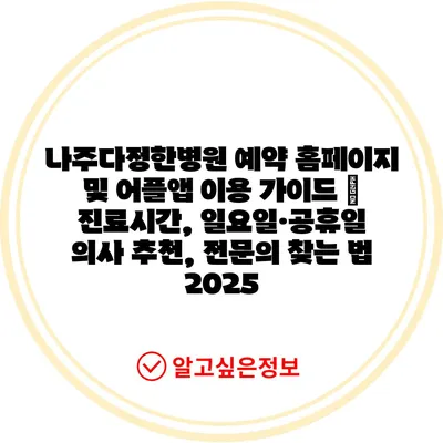 나주다정한병원 예약 홈페이지 및 어플앱 이용 가이드 | 진료시간, 일요일·공휴일 의사 추천, 전문의 찾는 법 2025