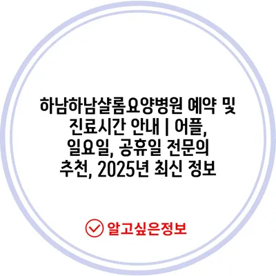 하남하남샬롬요양병원 예약 및 진료시간 안내 | 어플, 일요일, 공휴일 전문의 추천, 2025년 최신 정보