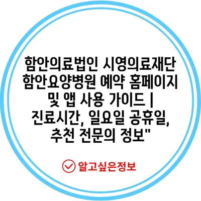 함안의료법인 시영의료재단 함안요양병원 예약 홈페이지 및 앱 사용 가이드 | 진료시간, 일요일 공휴일, 추천 전문의 정보”