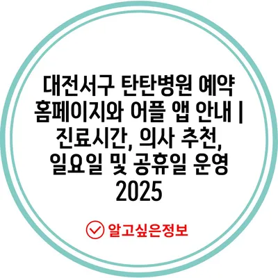 대전서구 탄탄병원 예약 홈페이지와 어플 앱 안내 | 진료시간, 의사 추천, 일요일 및 공휴일 운영 2025