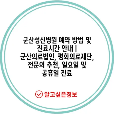 군산성신병원 예약 방법 및 진료시간 안내 | 군산의료법인, 평화의료재단, 전문의 추천, 일요일 및 공휴일 진료