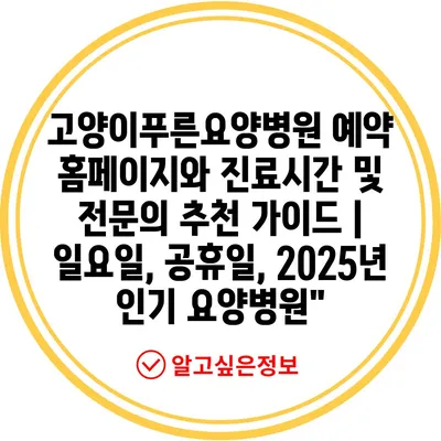 고양이푸른요양병원 예약 홈페이지와 진료시간 및 전문의 추천 가이드 | 일요일, 공휴일, 2025년 인기 요양병원”