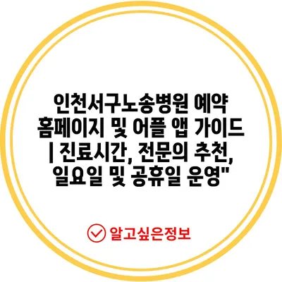 인천서구노송병원 예약 홈페이지 및 어플 앱 가이드 | 진료시간, 전문의 추천, 일요일 및 공휴일 운영”