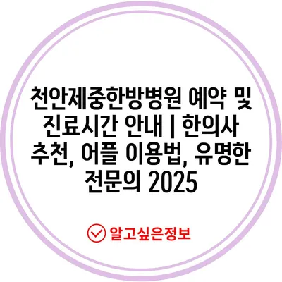 천안제중한방병원 예약 및 진료시간 안내 | 한의사 추천, 어플 이용법, 유명한 전문의 2025