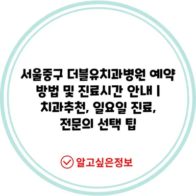 서울중구 더블유치과병원 예약 방법 및 진료시간 안내 | 치과추천, 일요일 진료, 전문의 선택 팁