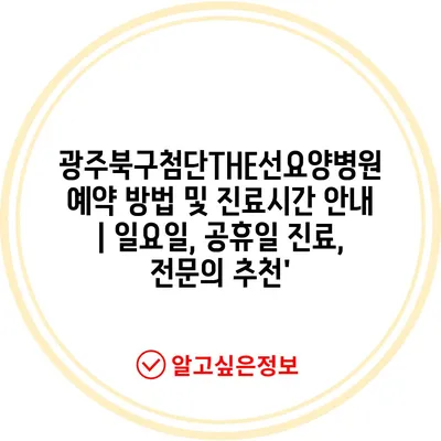 광주북구첨단THE선요양병원 예약 방법 및 진료시간 안내 | 일요일, 공휴일 진료, 전문의 추천’
