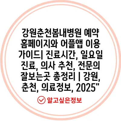 강원춘천봄내병원 예약 홈페이지와 어플앱 이용 가이드| 진료시간, 일요일 진료, 의사 추천, 전문의 잘보는곳 총정리 | 강원, 춘천, 의료정보, 2025″