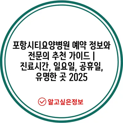 포항시티요양병원 예약 정보와 전문의 추천 가이드 | 진료시간, 일요일, 공휴일, 유명한 곳 2025