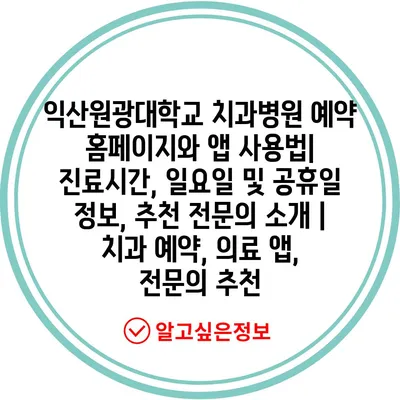익산원광대학교 치과병원 예약 홈페이지와 앱 사용법| 진료시간, 일요일 및 공휴일 정보, 추천 전문의 소개 | 치과 예약, 의료 앱, 전문의 추천