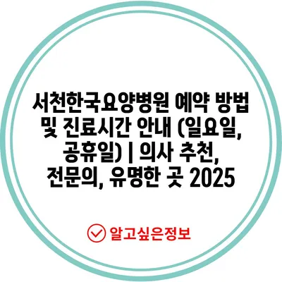 서천한국요양병원 예약 방법 및 진료시간 안내 (일요일, 공휴일) | 의사 추천, 전문의, 유명한 곳 2025